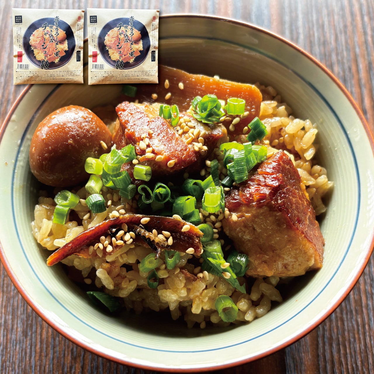 【TikTok連携】【送料無料】贅沢 ごろごろチャーシュー 炊き込みご飯の素 喜多方ラーメン風炊き込みチャーシュー飯 二合用(2人~3人前)×2個セット 煮卵 豚角煮 煮干だし 常温保存 簡単 時短料理 備蓄食 会津ブランド館