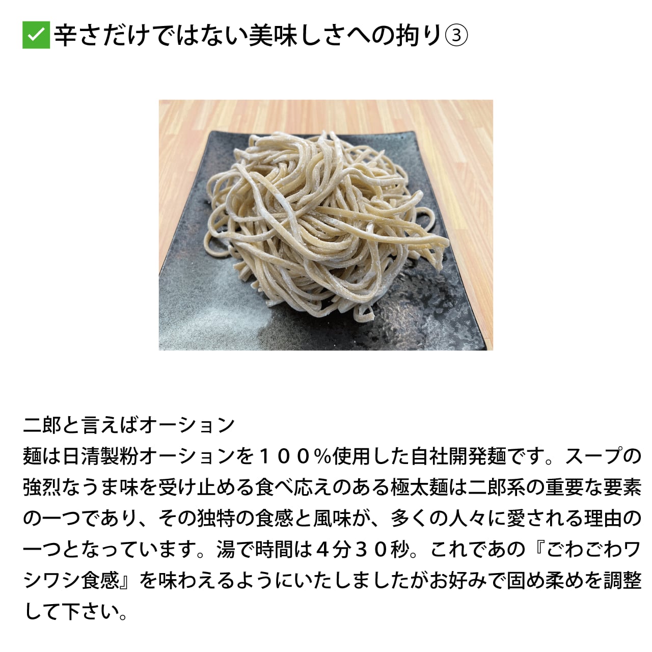 ✅ 日清製粉オーション100%麺でごわごわワシワシ食感を実現