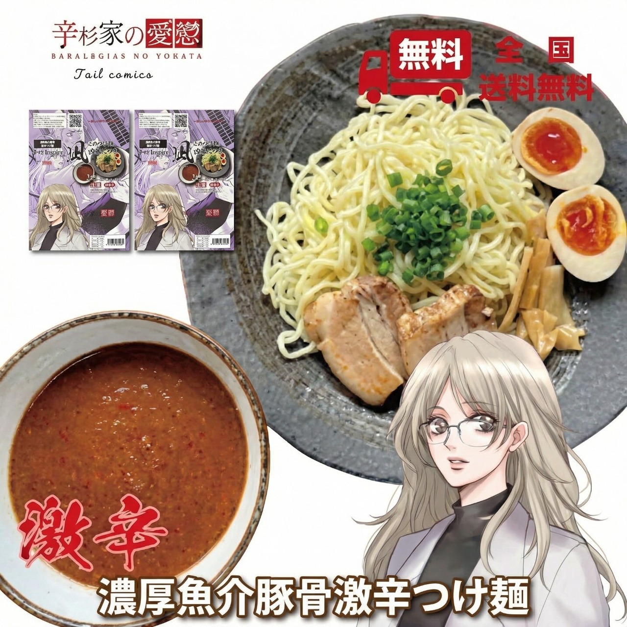 【TikTok連携】【送料無料】激辛ラーメン 濃厚魚介豚骨激辛つけ麺 辛杉家の憂鬱2nd 辛すぎInspire凪-NAGI- 生麺 豚骨つけ麺 具材付き チャーシュー付き 特濃つけ麺2個セット