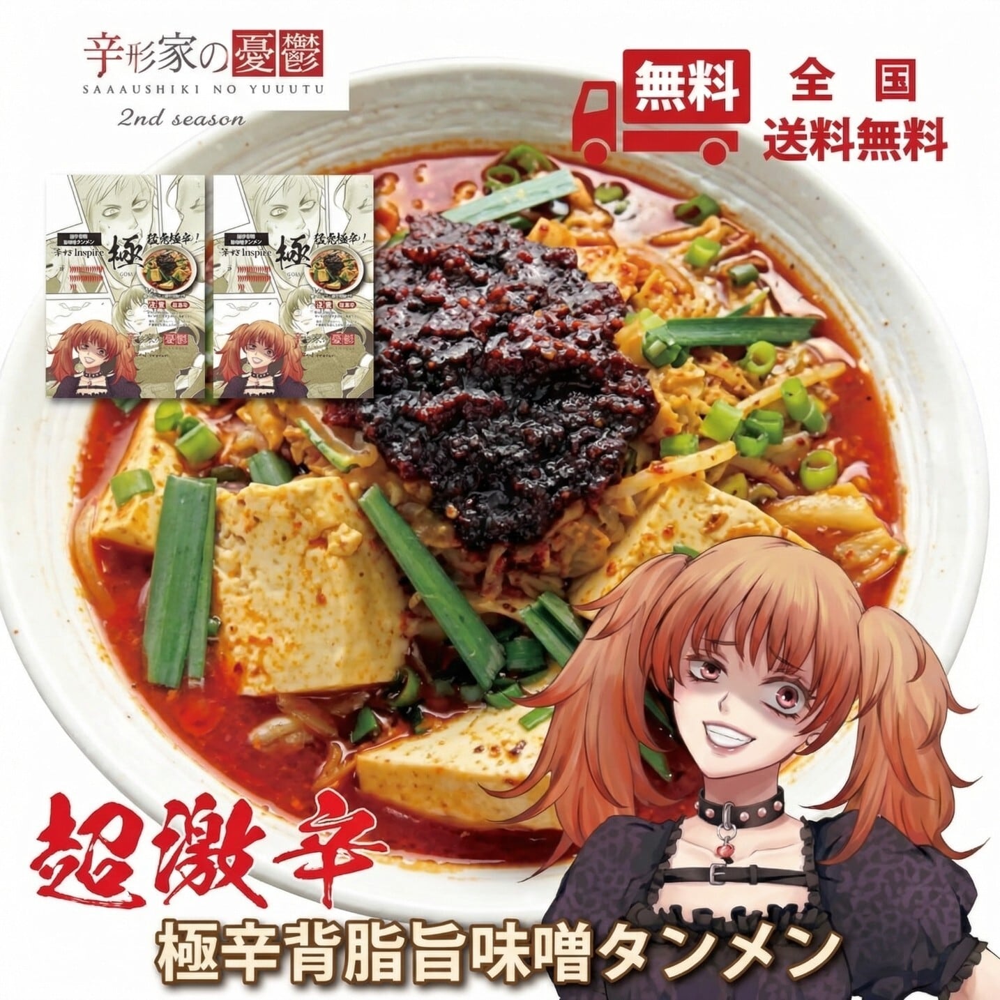【TikTok連携】【送料無料】激辛ラーメン 極辛背脂旨味噌タンメン 辛杉家の憂鬱2nd 辛すぎInspire極-GOKU- 生麺 濃厚味噌ラーメン 極辛背脂付き シリーズ最強の辛さ 激辛危険・注意2個セット