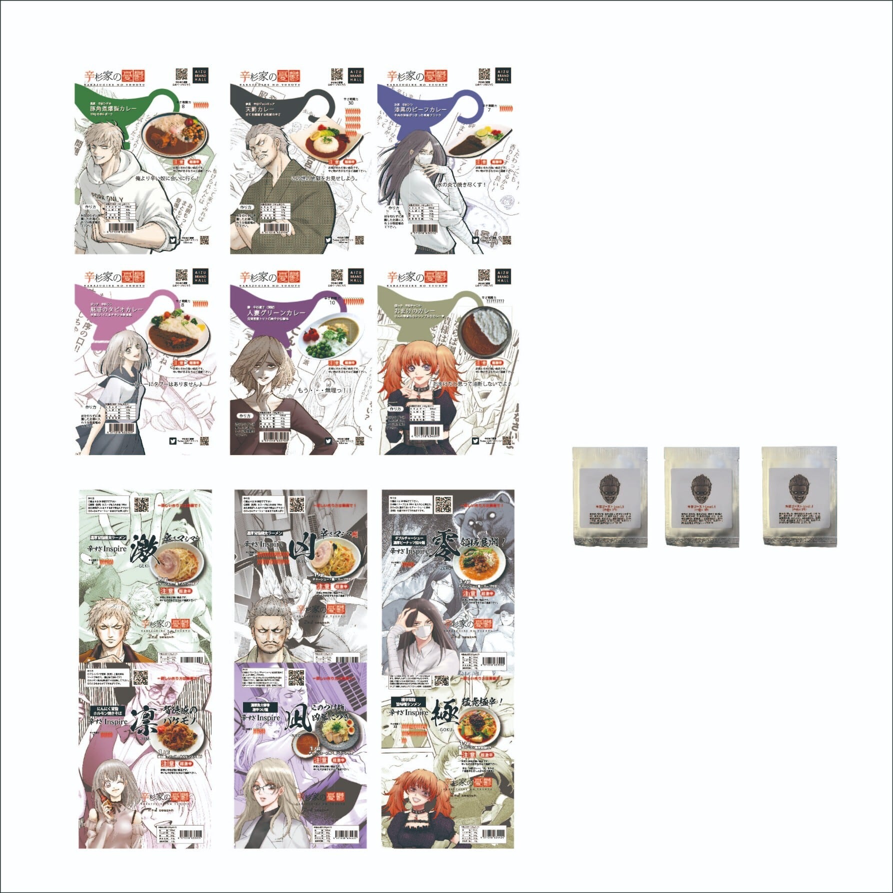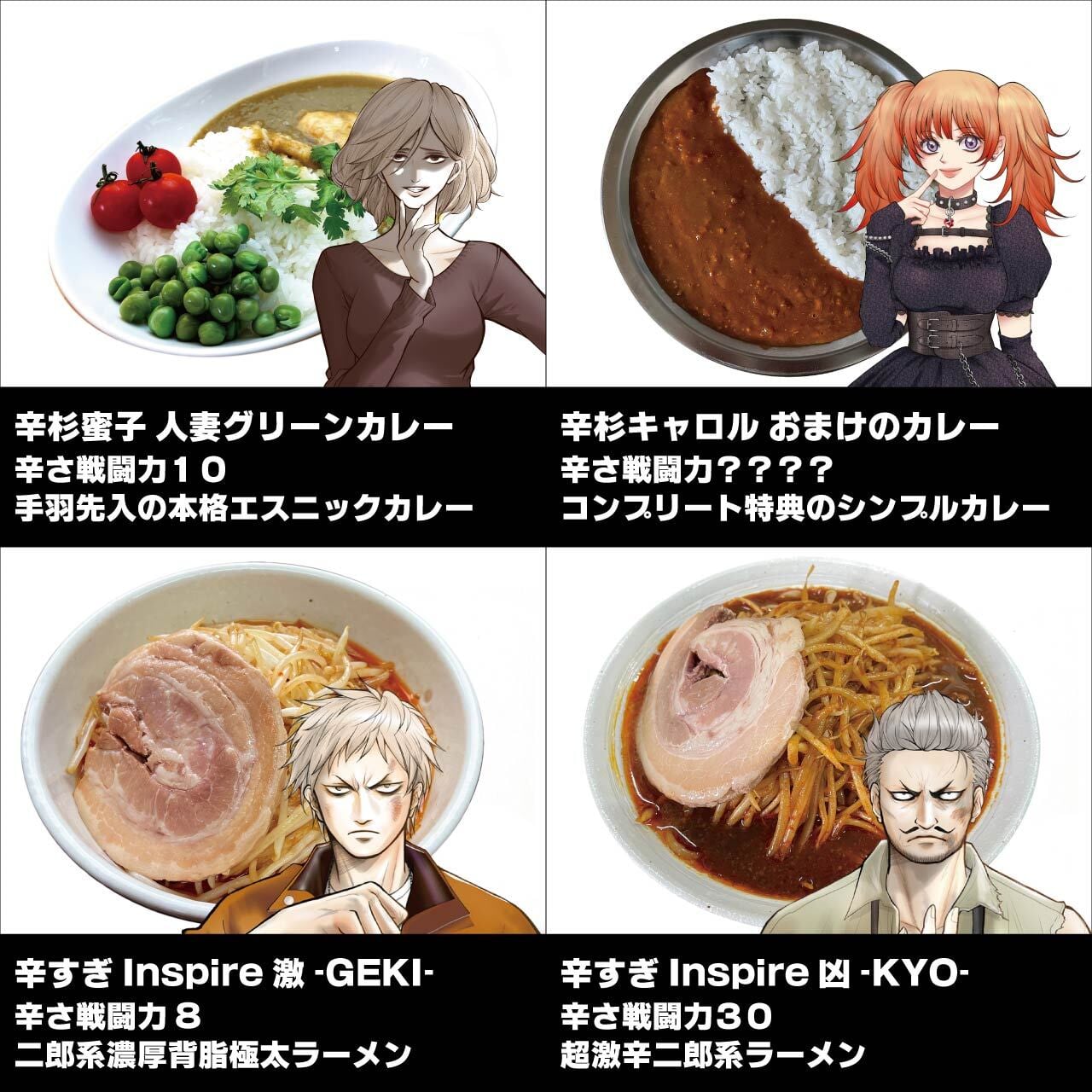 これまでに発売された1stシーズン『豚角煮爆裂カレー』『天罰カレー』『魅惑のタピオカレー』『漆黒のビーフカレー』『人妻グリーンカレー』2ndシーズン『辛すぎInspire激 濃厚背脂極太ラーメン』『辛すぎInspire凶 濃厚背脂極太ラーメン』『辛すぎInspire凛 にんにく背脂ホルモン焼きそば』『辛すぎInspire零 ダブルチャーシュー濃厚ピーナッツ担々麺』『辛すぎInspire凪 濃厚魚介豚骨激辛つけ麺』『辛すぎInspire極 激辛背脂旨味噌タンメン』に絡みをブーストするエクストラ小袋が3個と新開発の辛杉キャロル『おまけのカレー』を追加したコンプリートセットです。激辛マニアの方は是非!