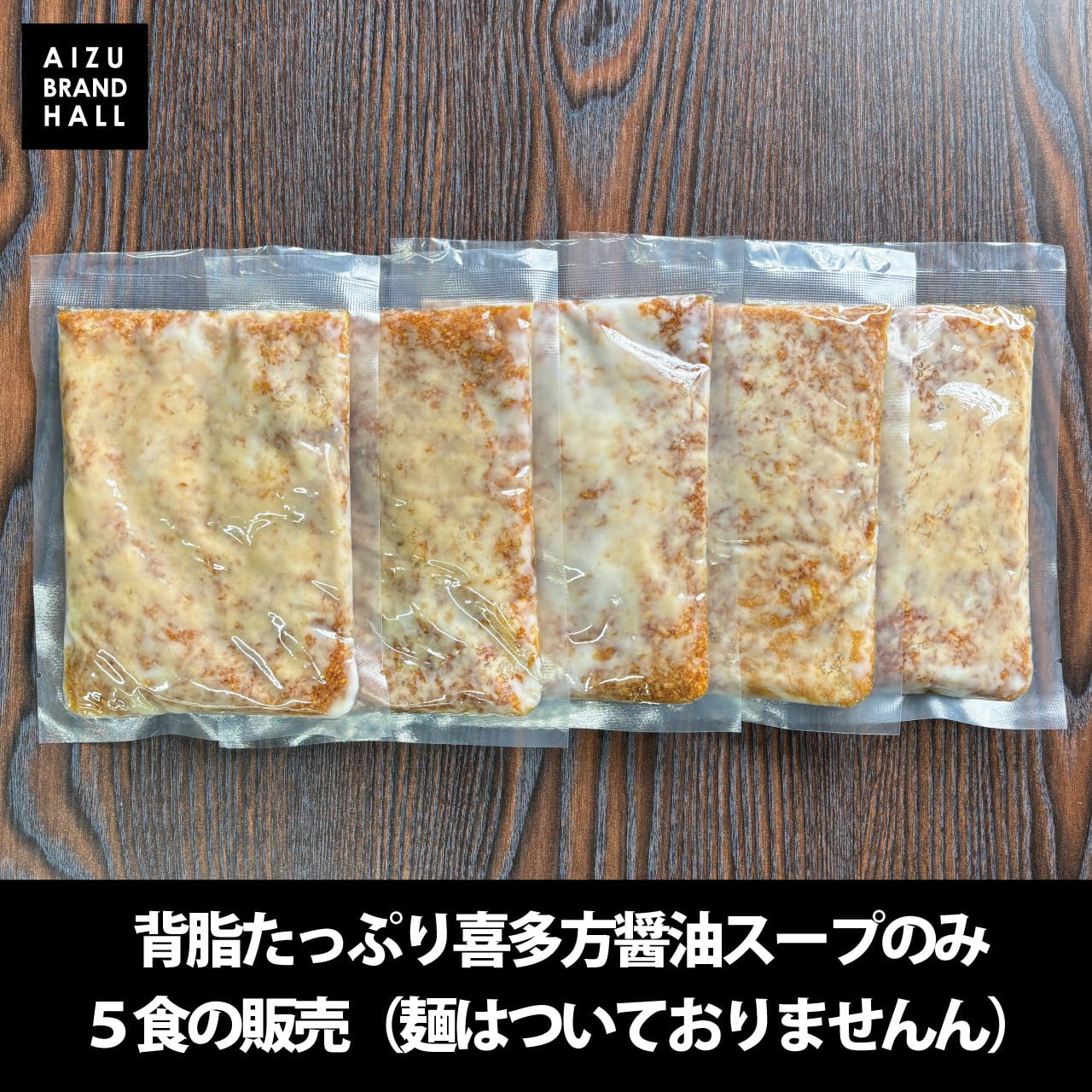 【TikTok連携】【送料無料】喜多方 背脂醤油ラーメンスープのみ5食セット こってり系 140g大容量 エキスなどは極力控えたパーフェクトラーメン用 常温 会津ブランド館