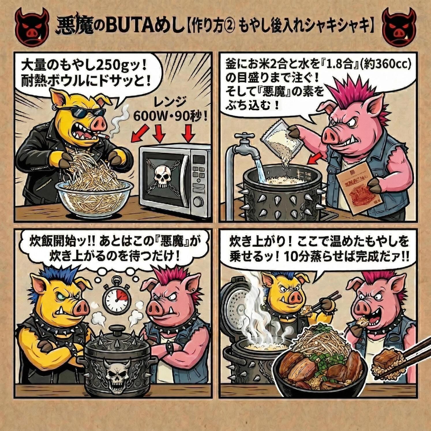 「ラーメンもいいけど、この強烈な旨味をご飯でガッツリかきこみたい…」そんな願望を叶える、前代未聞の炊き込みご飯の素「悪魔のBUTAめし」が誕生しました。準備するのはお米と「もやし」だけ。あなたの家の炊飯器が、今日から魅惑の釜に変わります。