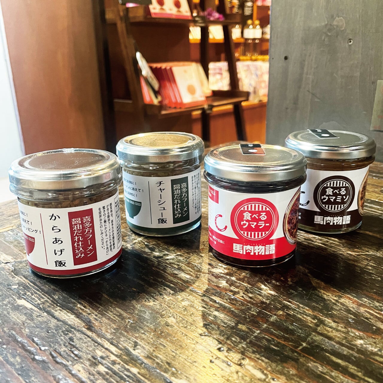 人気の肉系ご飯のお供4種セット。柔らかい鶏もも肉のからあげをそのまま使ったからあげ飯。ラーメン屋が作る本格チャーシューから作るチャーシュー飯。会津産の新鮮な馬肉を使用した食べるウマラー、食べるウマミソ。様々な味が一度に楽しめるバラエティー豊かなご飯のお供が食卓を彩ります。