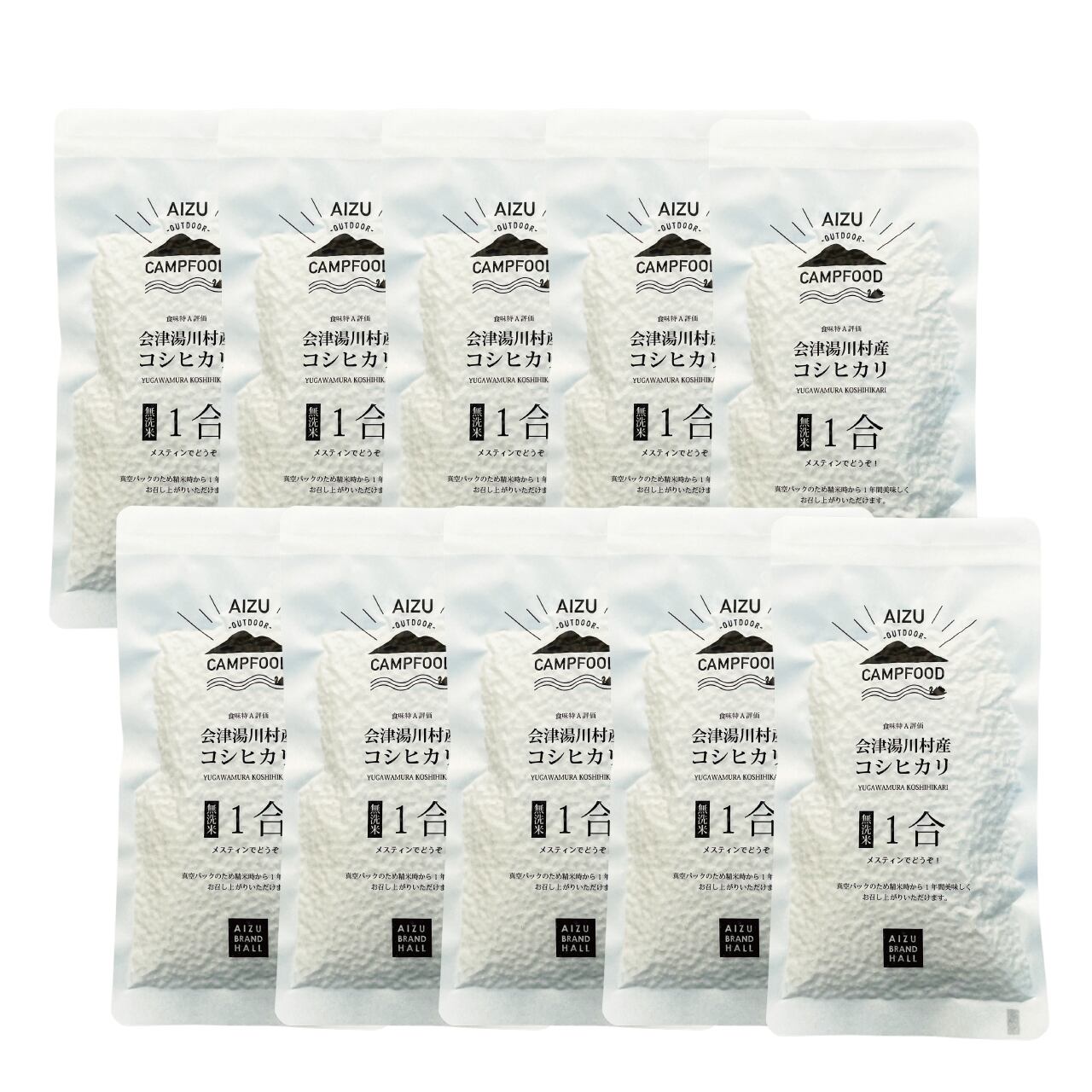 【TikTok連携】【送料無料】キャンプ AIZU CAMPFOOD 会津湯川村産コシヒカリ無洗米1合×10個 メスティン用