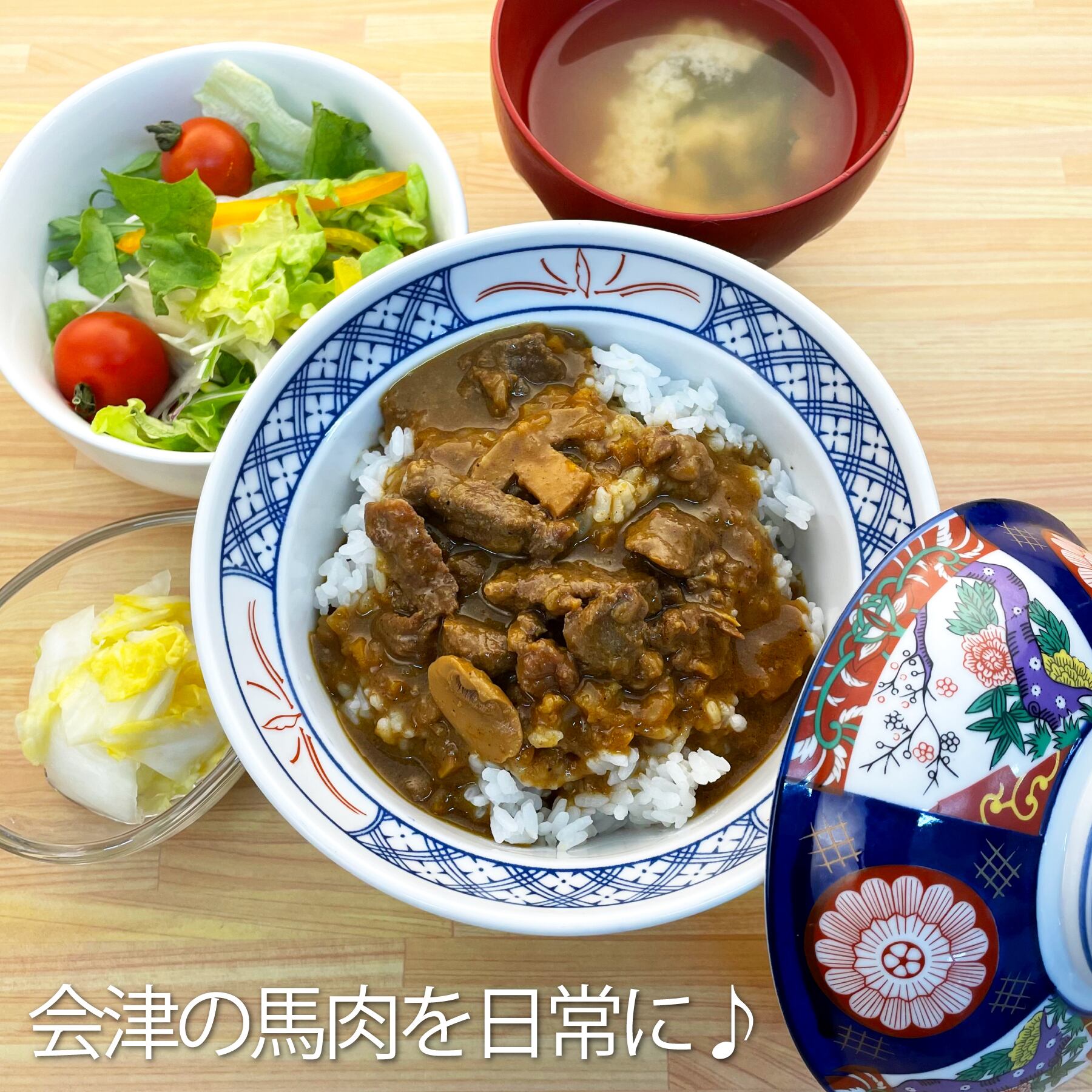 会津ブランドの馬肉を使った四川風麻婆豆腐丼。馬肉は高たんぱく低カロリーでビタミンも豊富。ヘルシーで美味しいウマ丼ぶりをお楽しみください。会津の馬肉は明治時代、戊辰戦争で傷ついた方々の体力の早期回復のために食されたことが始まり。馬肉はたんぱく質が多く高い栄養価なのに低カロリー。ビタミンB群や鉄分も豊富で体内の代謝を促し貧血予防にも効果的!馬肉といえば「馬刺し」が定番ですが、こんなに素晴らしいお肉を馬刺しだけで食べるなんてもったいない!「馬肉物語」は新しい食の提案です。